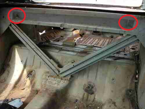 Next is to remove the seat back. Chrysler used two different methods to retain the seat backs. Either a pair of screws (3/8” – I think) or fold over tabs. After screws are removed (or tabs bent over) the rear seat back is to be raised up about an inch then it can be removed.