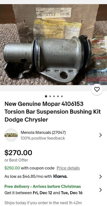 Link: New Genuine Mopar 4106153 Torsion Bar Suspension Bushing Kit Dodge Chrysler | eBay