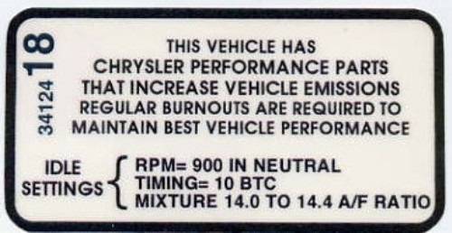 The R/T Garage, home of the Rev-n-nator, has these "emissions" decals. I have one, but can't figure out where to put it as the radiator support is too narrow.