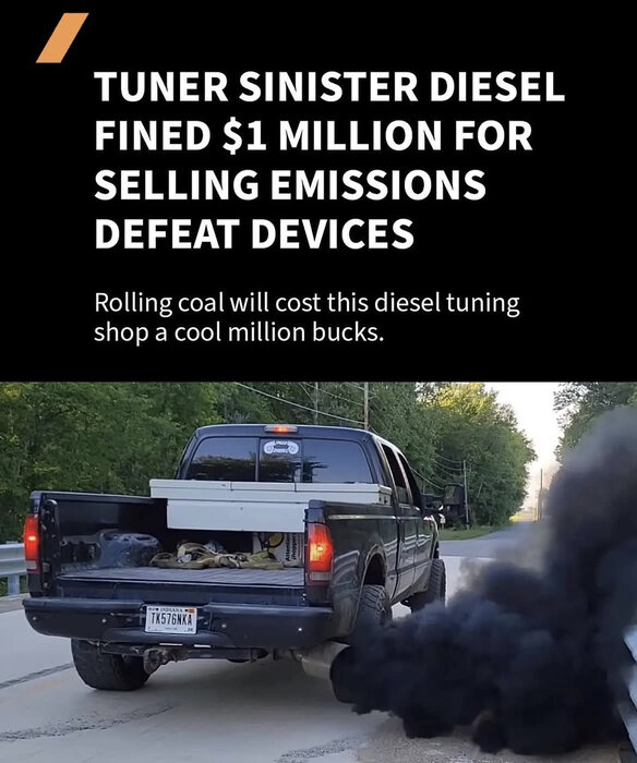 I agree but, that’s the thing. Most people with programers/chips/tuners on their diesels aren’t rolling coal. Typically just guys looking for MPG, shift points for towing, ect…the coal rolling dudes are just the most visible (assholes) but, not the majority of customers. All in all, what this does is, opens up any aftermarket manufacturer making and selling non OEM compliant “performance parts” a target. This is the beginning of the end. Most companies just won’t build/risk millions in fines or want the responsibility for what their customers decide to put on public roads.