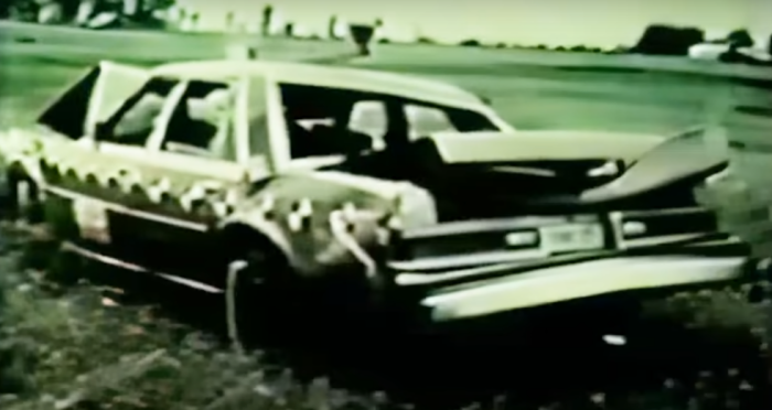 Diplomat used to test road barriers to funny results. clearer footage from this crash test was seen in a video called "How Road Barriers Stopped Killing Drivers". haven't been able to find the source though